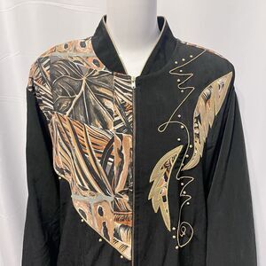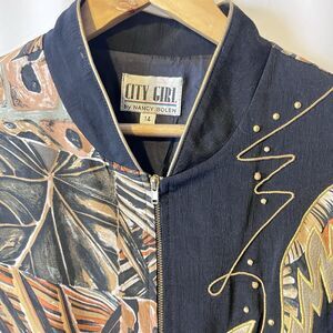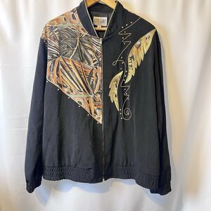 80’s Workout Mom Vintage Nancy Bolen Embroidered Track Jacket Plant Print Sz 14