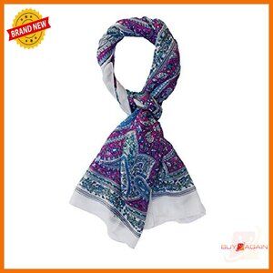 Style: Oblong paisley scarf in white, pink, and turquoise