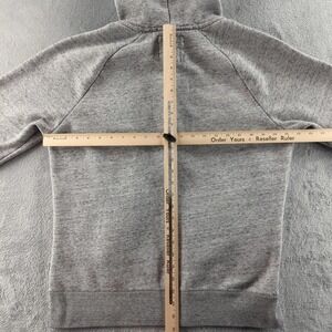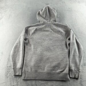 Pre-owned with light wash wear from normal use. Small faint tan spot on the front near the zipper as shown. Fabric, zipper, drawstrings and logo embroidery are clean and intact, interior fleece soft with no holes or tears.