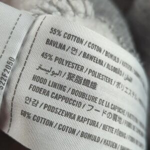 Material: Shell 55% cotton, 45% polyester fleece; hood lining cotton blend with soft brushed interior.