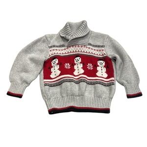 Toddler Boy Gymboree 18-24 Months Cowl Neck Gray & Red Snowman Sweater