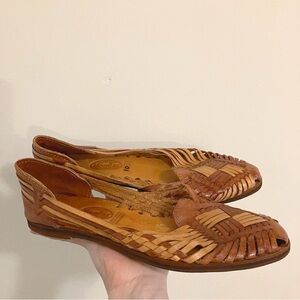 Vintage • Mongas Artisanal Leather Braided Sandals in Brown