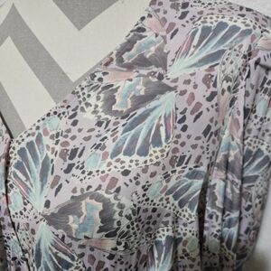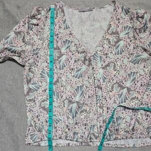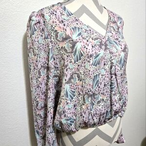 Tart Pastel Surplice Wrap Blouse Butterfly Print Bubble Hem Size Medium