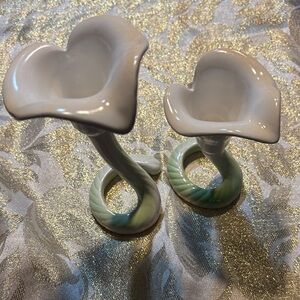 Fitz and Floyd White and Green Calla Lily Candlestick Holders