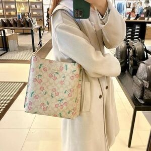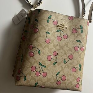 NWT Coach Mollie Heart Cherry Print Signature Coated Canvas Bucket Handbag