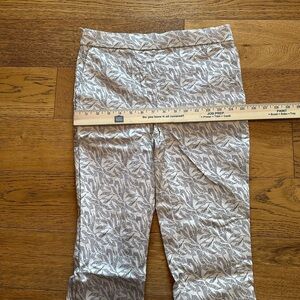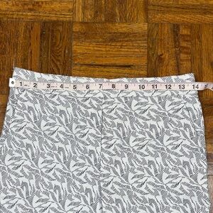 Chic trousers with a black and white leaf design. Ideal for versatile styling. Like new. Has stretch see pictures for measurements, materials, and care.