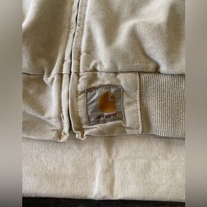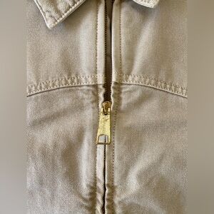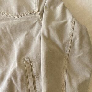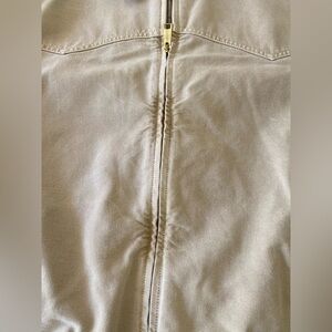 Stylish and versatile beige jacket, perfect for any occasion. Comfortable and durable design, perfect for work or play. In good used condition with tons of life left! No major rips or holes, zipper pull has some scratches.