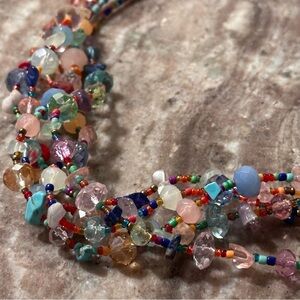 Multicolor 5 Strand Beaded Gemstone & Glass Beads Chocker Necklace Vibrant EUC