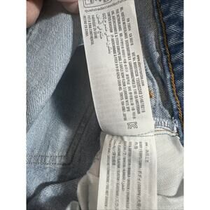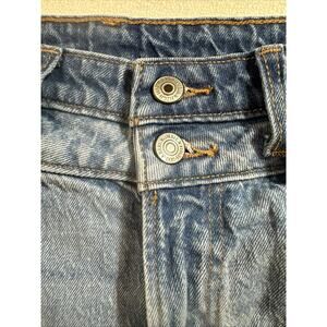 The product is a pair of Abercrombie & Fitch Women's The 90s Relaxed Jean in a high rise curve love fit, size 30/10. These jeans feature a solid blue color with a light fabric wash, made from a cotton blend denim material. They have a high rise waist with a zipper and button closure, as well as accents like button and zipper details. The jeans also have a straight leg style with a regular fit, featuring distressed detailing and pockets for added style and functionality. Perfect for all seasons, these 90s-inspired jeans are a versatile addition to any wardrobe.