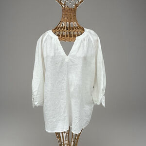 Jones New York White Cotton Blouse V-Neck Tie Sleeve 3/4 Sleeve Women PM