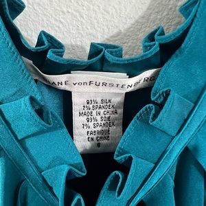 This beautiful camisole from Diane von Furstenberg is a must-have for any stylish woman. Made from luxurious silk, it features a flattering V-neckline and a lovely bow accent. Its vibrant blue color is perfect for any occasion and it comes in a size 6, ideal for regular-sized women.