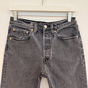 Levi’s Denim 501 High Rise Button Fly Raw Hem Cropped Jeans Faded Black Gray 26