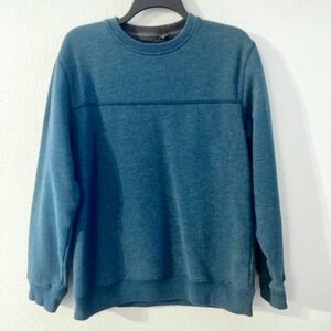 Arrow brand. Size medium. Long sleeve crew neck sweater. Color most closely matches the “Turquoise Blue” Crayola crayon. In preloved condition; very few, if any, signs of wear. Care and material content tag has been removed.