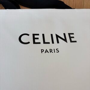 White and black high quality shopping bag with grosgrain black ribbon handles