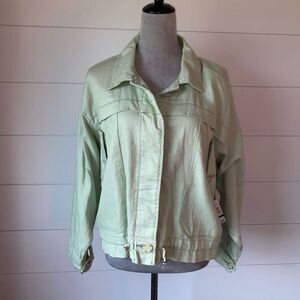 approx. 35in long, 21 in arm to arm, taken from size S button front and belt closure