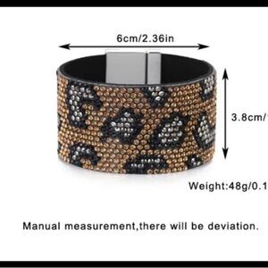 ⭐️Silver & Black Crystal Rhinestone in Leopard Print Design Accent The Length Of The Cuff