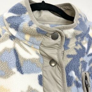 Thread + Supply blue taupe yellow white camo fleece jacket M