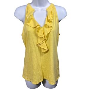Lilly Pulitzer Yellow Ruffle V Neck Sleeveless Pima Cotton Tank Top M Preppy