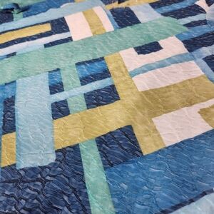 Alfred Dunner Textured Blue and Green Abstract Blouse 3/4 Sleeve Large