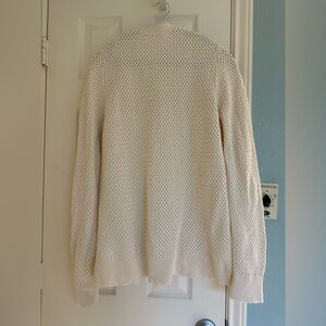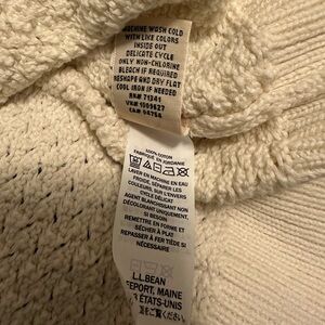 L.L. Bean Ivory Cable Knit Faux Wood Button Down Cardigan Sweater size Large
