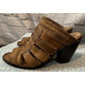Freebird by Steven Vulture Leather Heeled Sandals Mules Open Toe Brown Women's 8