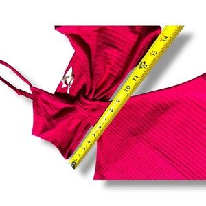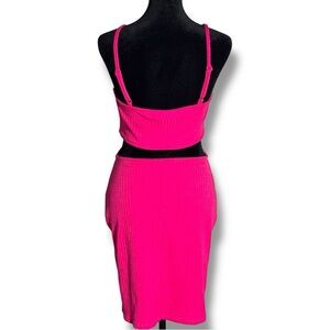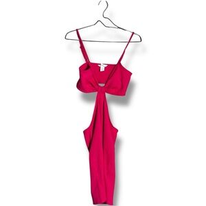 H&M Bold Fuchsia Sleeveless V-Neck Side Cutouts Ribbed Textured Mini Dress