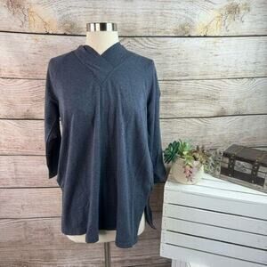 PureJill J Jill Affinity French Terry Pima Cotton Tunic Top V-Neck Blue Size Extra Small