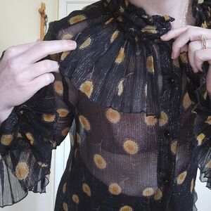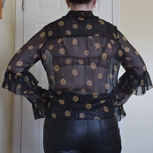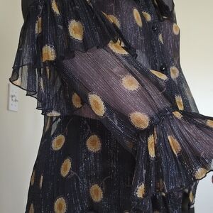 Anna SUI Black Metallic Ruffle Women's Top 10 Medium
