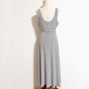 Loft Nautical Contrast Striped Tie Waist Midi Dress