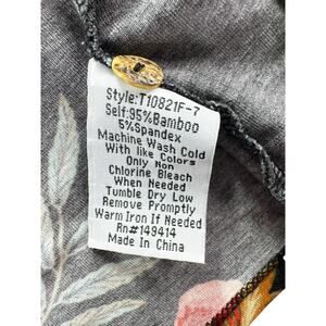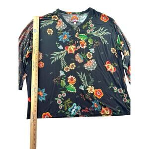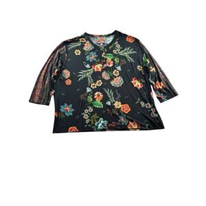 Johnny Was Ardell Henley Shirt Womens XL Soft Knit Top 3/4 Sleeve Black Floral