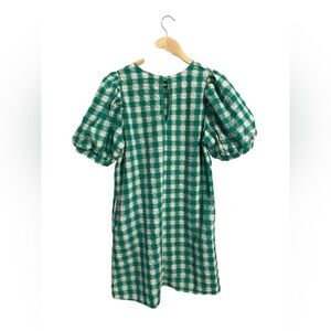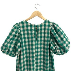 a new day Green White Checkered Gingham Puff Sleeve Midi Sheath Dress Large