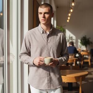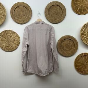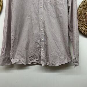 Elevate your wardrobe with this classic Everlane long-sleeve button-down shirt. Featuring a timeless striped pattern in red and cream, this shirt exudes preppy casual style. Perfect for various occasions, this versatile piece can be dressed up or down to suit your needs.