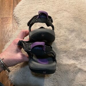 Teva Tierra Sport Sandals Size 8 Black Gray Purple Accent Hiking Water Womens, some wear on back strap on each shoe shown in photos, good used condition