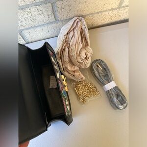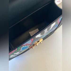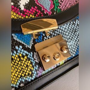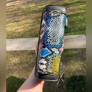 Black Faux Leather Multi Color Rainbow Snake Reptile Print Convertible Purse Belt Bag Envelope Style Closure ๐๐ค