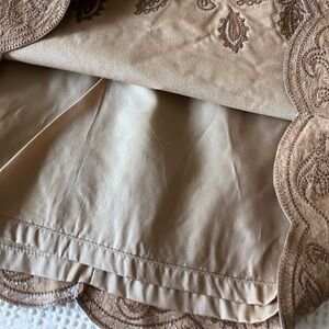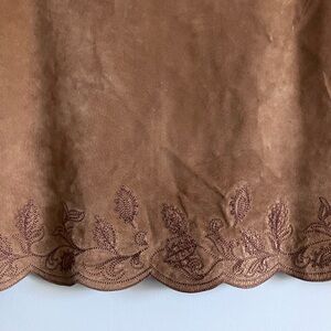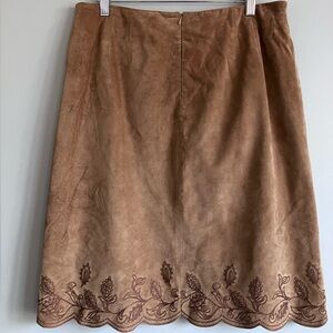 LORD & TAYLOR Vintage Tan Leather Scalloped Hem Embroidered Pencil Skirt Size 14
