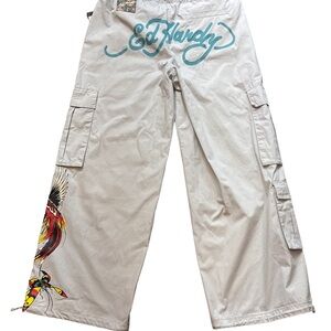 Ed Hardy Butterflies Poplin Cargo Pants Light Grey