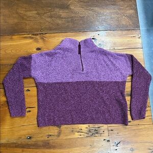 Talbots Purple Two-Tone Turtleneck quarter zip Knit Sweater Size Medium
