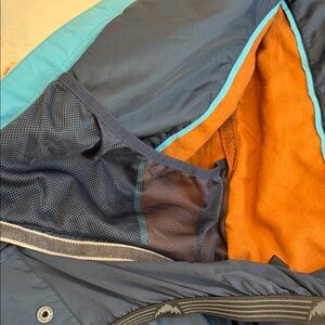 Great jacket used for one season but purchased something new. Only blemish is on the last picture which is on the back of the hooded section.