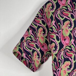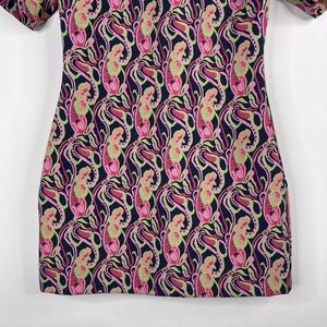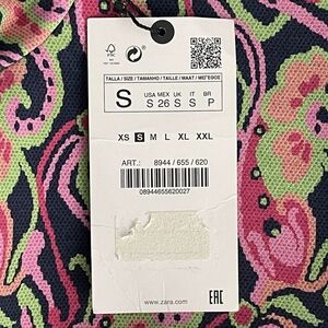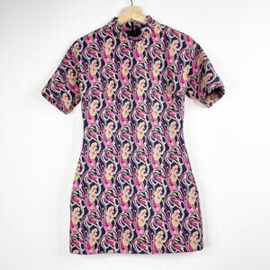 2/$30 NWT ZARA Floral Mini Shift Dress Navy Pink High Neck Short Sleeve #7305