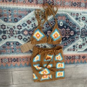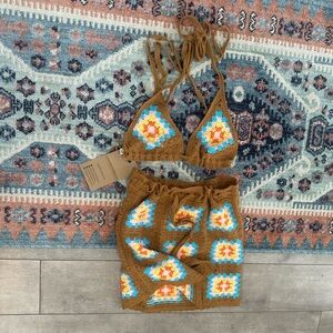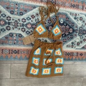 New POL Crochet Halter & Skirt Set One Size Granny Square Women’s Crochet Set