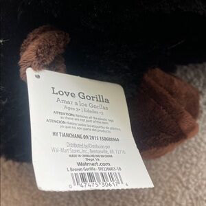 Charming plush gorilla in black and brown. Ideal for hugs and playtime.