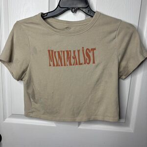 This Cotton On minimalist graphic crop tee features a neutral beige tone with a rust-colored “MINIMALIST” front print. Soft cotton feel with a structured crop silhouette that pairs well with high-waisted jeans or lounge bottoms. Simple, trendy, and easy to style.