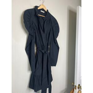 NEW Ulla Johnson Naima Cotton Poplin Long Puff Sleeve Mini Dress Noir Size: 8