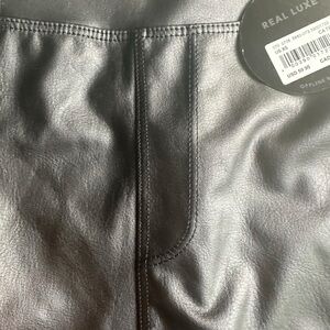 Style: Faux leather leggings, high-waisted, ankle length, pull-on