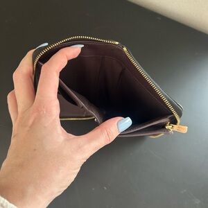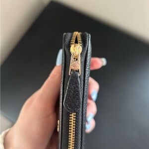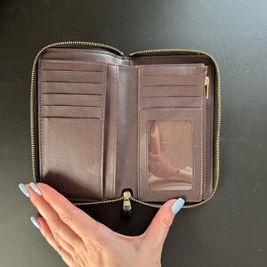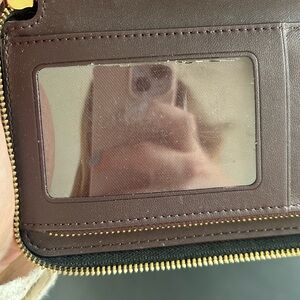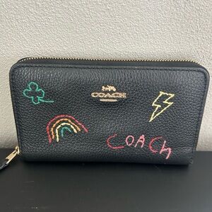 Black Coach wallet featuring vibrant diary embroidery. I also have the matching purse in my closet. Has a crack on side if ID slot, but still functional; otherwise great condition and perfect for adding some originality to your look.