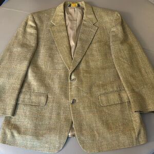 Brooks Brothers Mens’ vintage brown & green herringbone wool blazer. Features 2 button closure, chest pocket ,2 flap pockets, 2 internal pockets, single back vent & full lining.