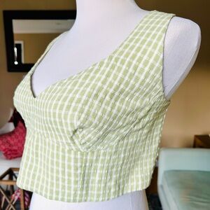 Elodie Green Gingham Corset Crop Top Women's Size XL