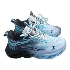Trendy blue athletic sneakers with a sleek design. Perfect for sports and all day all terrain lightweight casual wear.
