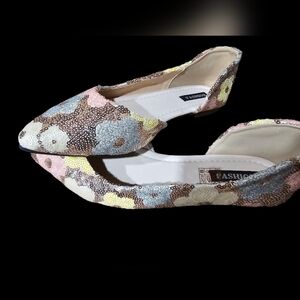 Step out in style with these women's sequin flats. Featuring a stunning multicolor design, these shoes are perfect for any occasion. Add a touch of sparkle to your outfit with these comfortable and chic flats. Bought on Shein. super cute!!