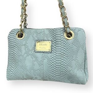 Nicole Miller Shoulder Bag Faux Snakeskin Animal Print Large Gold Chain Purse